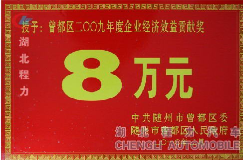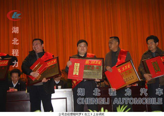 程力公司2009年稅收在汽車行業(yè)率先突破1000萬元,為隨州及曾都區(qū)的經(jīng)濟建設(shè)作出了突出貢獻,分別獲得市政府十萬元獎勵及區(qū)政府八萬元獎勵。會上,市委書記馬清明同志親自為公司總經(jīng)理程阿羅頒發(fā)了獎牌和獎金,并對程阿羅總經(jīng)理說,咱們在常委會上,都感到程力公司2009年稅收能過千萬,是汽車行業(yè)一件了不起的事情,希望你們能再接再厲,為隨州經(jīng)濟工作作出大的貢獻。